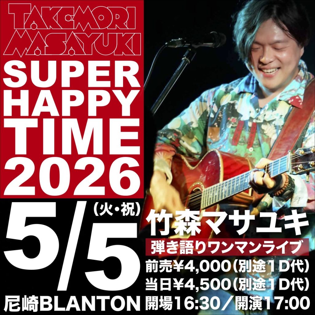 【兵庫】2026年5月5日(火・祝)SUPER HAPPY TIME 2026 in 尼崎|竹森マサユキ 弾き語りワンマンライブ